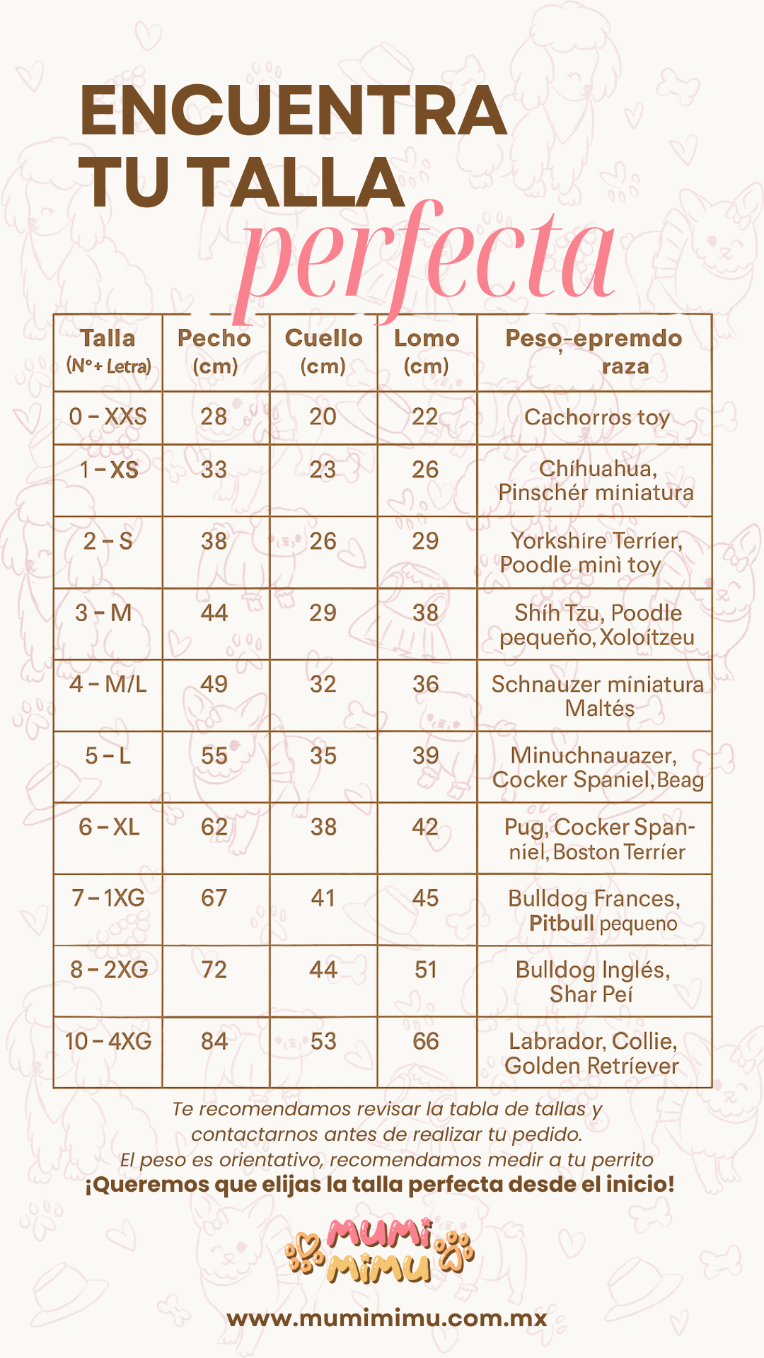 Si ninguna talla coincide con las medidas de tu peludo, no te preocupes. Ofrecemos un servicio de confección a medida: